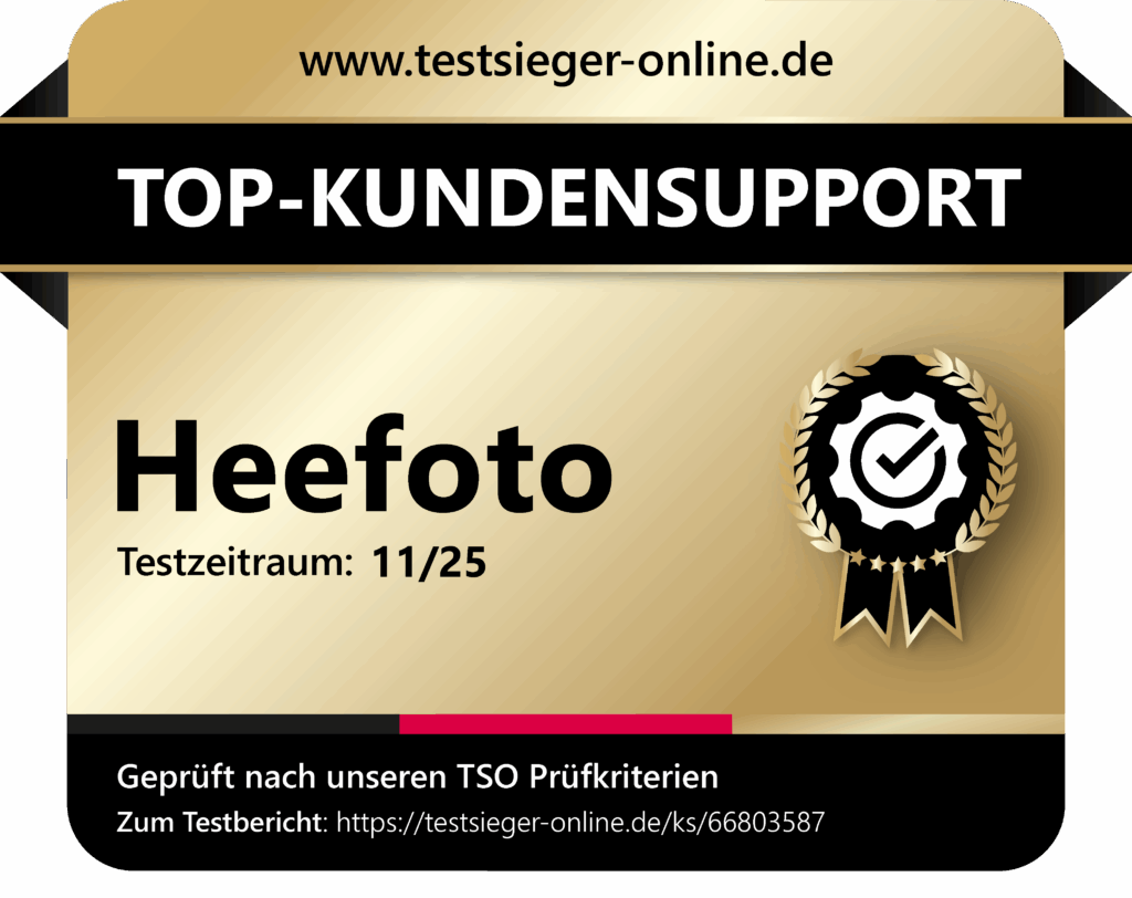 Der Kundenservice von Heefoto ist von Montag bis Freitag erreichbar. Anfragen, die an Werktagen eingehen, werden zuverlässig bearbeitet. An Wochenenden und Feiertagen ist der Support nicht verfügbar, was bei der Planung von Rückfragen berücksichtigt werden sollte.