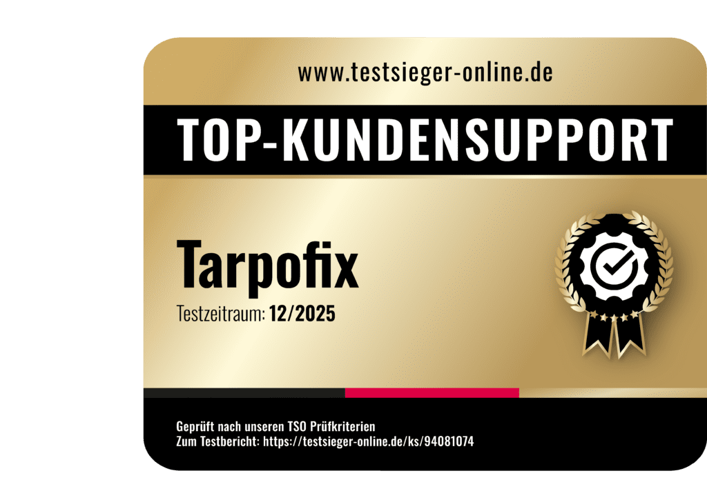 Im Test überzeugte Tarpofix mit einer durchschnittlichen Reaktionszeit von unter drei Stunden auf Kundenanfragen. Damit liegt der Händler deutlich über dem Marktdurchschnitt und zeigt eine vorbildliche Kundenorientierung. Die zügige Kommunikation trägt maßgeblich zu einem positiven Kauferlebnis bei und erhöht das Vertrauen der Kunden in den Support.