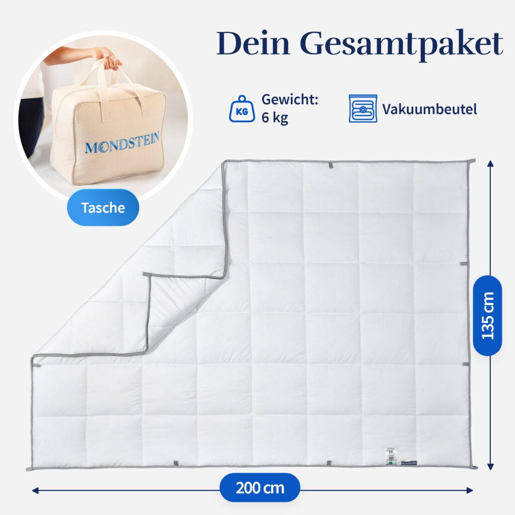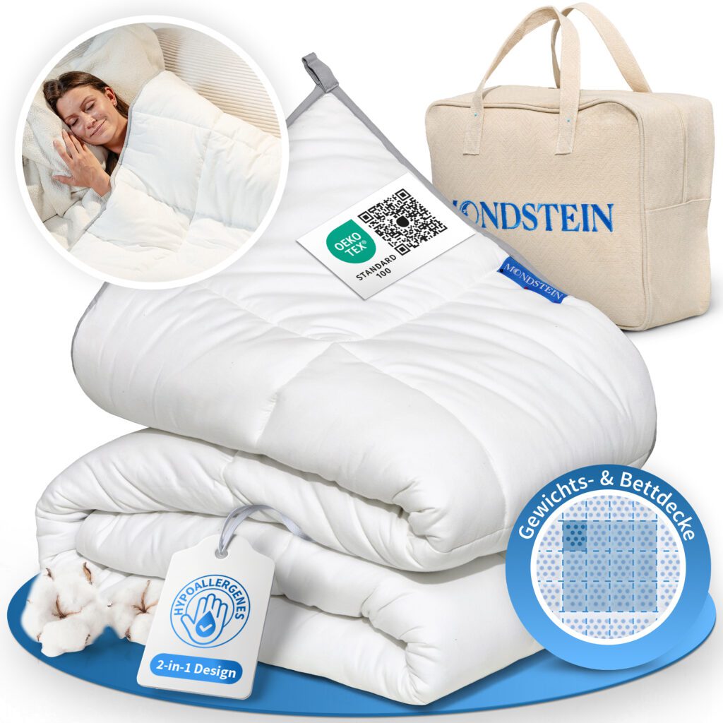 Doch die Auswahl solcher Decken ist groß und vielfältig. Daher haben wir uns für Sie die 2-in-1 Gewichtsdecke der Marke MONDSTEIN genauer angeschaut. Unser Testbericht soll Ihnen dabei helfen, zu entscheiden, ob diese Gewichtsdecke die richtige Wahl für Sie ist.