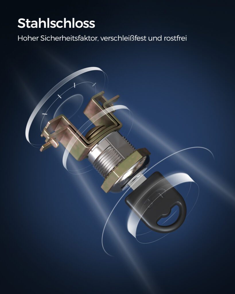 Der von uns getestete Aktenschrank ist ein zusammenbaubares Modell der Marke SONGMICS, hauptsächlich aus robustem Stahl gefertigt. Dieses Produkt bietet eine praktische Lösung, um Dokumente sicher und übersichtlich zu lagern. Mit seinem vielseitigen und stabilen Design ist dieser Aktenschrank nicht nur für das Büro, sondern auch für die Nutzung im Wohnzimmer, in der Garage und in anderen Räumen hervorragend geeignet. Mit SONGMICS Stahl-Aktenschrank können Sie Ihre Unterlagen strukturiert und griffbereit aufbewahren und so für optimale Organisation sorgen.