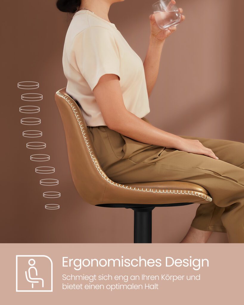 Erstens ist das ergonomische Design des Barhockers hervorzuheben. Die sorgfältige Gestaltung bringt Komfort und Halt perfekt in Einklang und bietet Ihnen sogar bei längerer Nutzung eine angenehme Sitzerfahrung. Die ergonomische Rückenlehne und das doppelschichtige Sitzkissen tragen dazu bei, Ermüdungserscheinungen effektiv zu lindern.