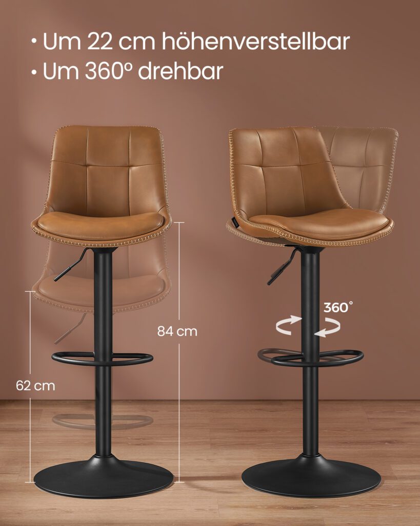 Praktischerweise lässt sich der Hocker vielseitig einsetzen. Ob an der Bartheke, an der Kücheninsel, im Esszimmer oder im Wohnbereich – der VASAGLE Barhocker fügt sich problemlos in jede Umgebung ein und bietet ein hohes Maß an Sitzkomfort. Durch seine Höhenverstellbarkeit und Drehfunktion passt er sich optimal an unterschiedliche Nutzungssituationen an, was ihn zu einer ausgezeichneten Wahl für vielfältige Einsatzmöglichkeiten macht.