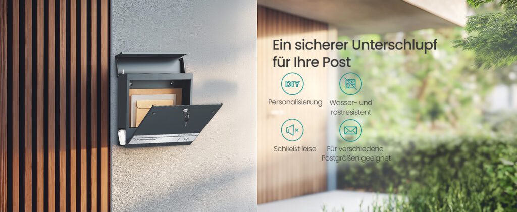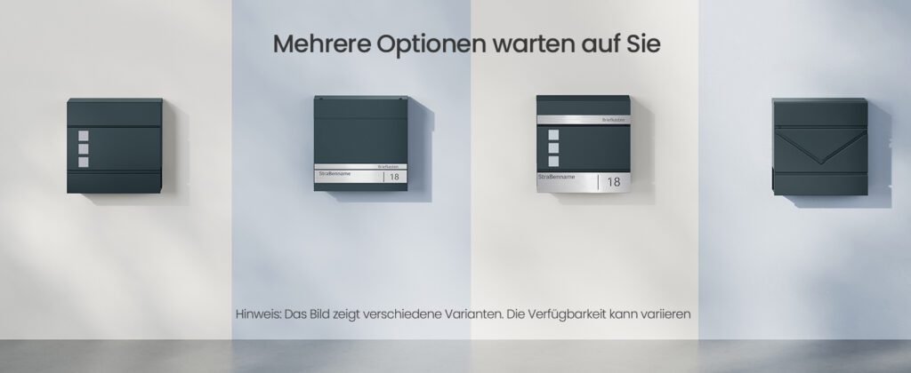 Einen besonders individuellen Akzent setzen die Briefkastenschilder, die es Ihnen ermöglichen, den Briefkasten mit Ihrem Namen, Ihrem Straßennamen und Ihrer Hausnummer zu personalisieren. Diese Personalisierung gewährleistet eine korrekte Zustellung Ihrer Post.