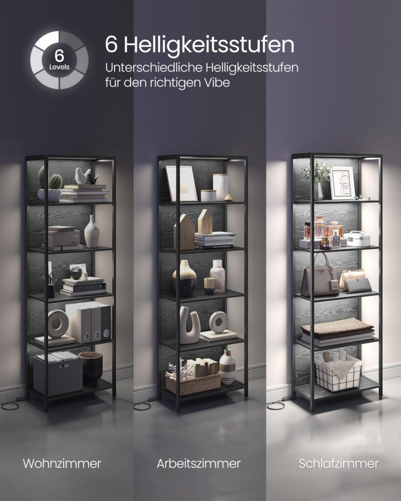Der größte Vorteil für Kunden liegt allerdings in der Kombination dieser Eigenschaften. Das VASAGLE Bücherregal mit LED-Beleuchtung bringt Ordnung in jede Wohnung und präsentiert Sammlerstücke auf besondere Art und Weise. Es passt sich problemlos in verschiedene Umgebungen wie das Wohnzimmer, Schlafzimmer oder Kinderzimmer ein und liefert gleichzeitig ein visuelles Highlight.