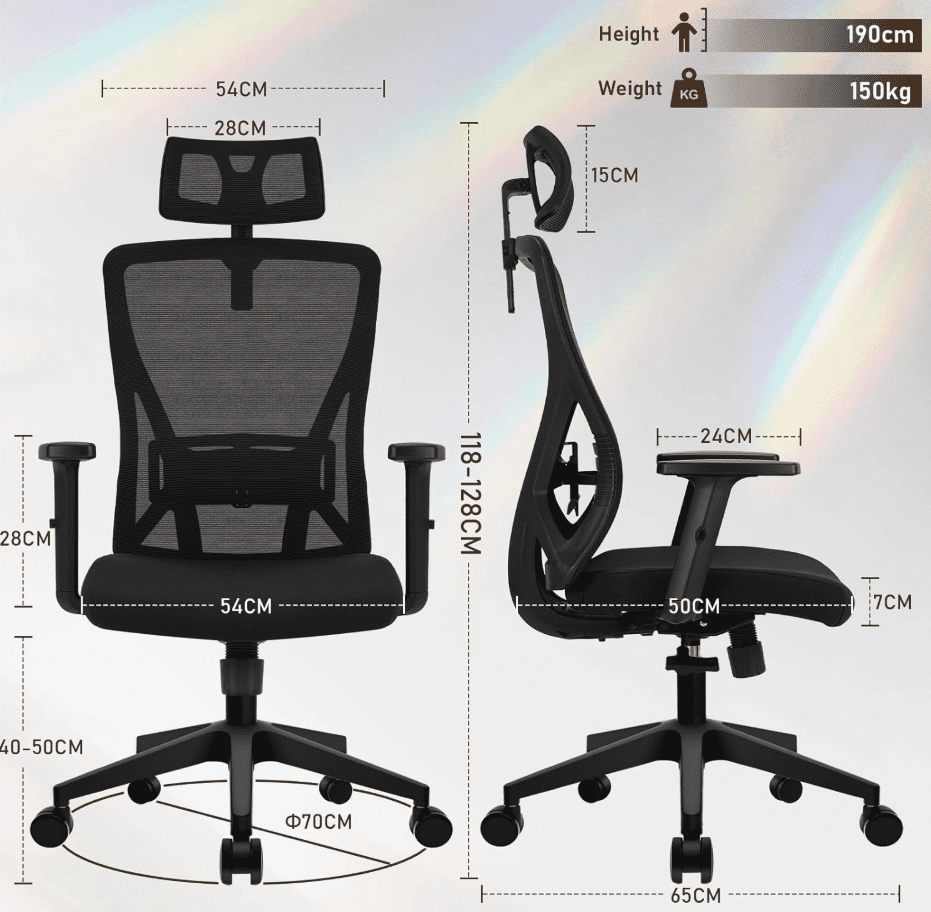 Der Bürostuhl ist für verschiedenste Anforderungen ausgelegt. Er passt sich nahtlos in Büroumgebungen, Arbeits- oder Schlafzimmer sowie Wohnheime ein. Durch seine optimalen Maße kann er bei Nichtgebrauch einfach unter den Tisch geschoben werden und ist daher auch für kleinere Wohnungen oder Zimmer geeignet.