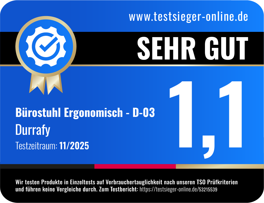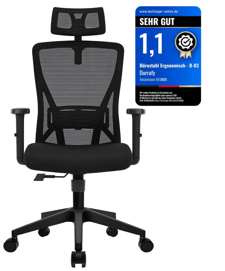 Unser aktuellstes Testprodukt, der Bürostuhl Ergonomisch – D-03 der Marke Durrafy, besticht durch eine Reihe an hochwertigen Eigenschaften, die sich positiv auf die Arbeits- oder Freizeitumgebung auswirken. Besonders hervorzuheben sind drei Aspekte dieses Designs.