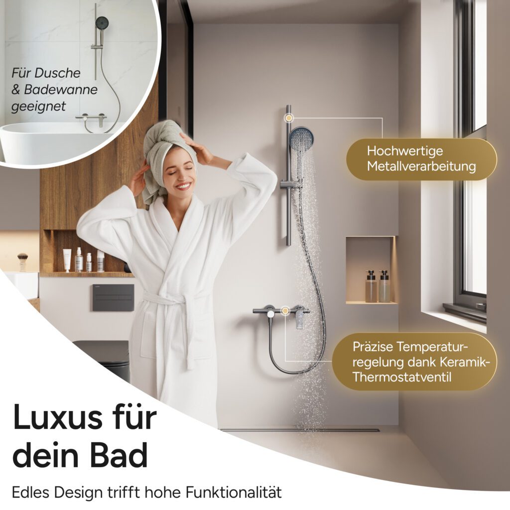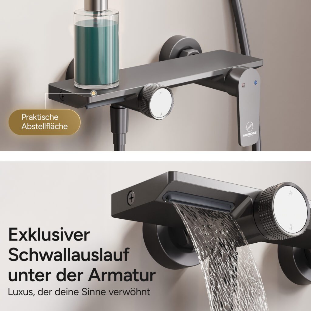 Alles in allem hinterlässt das AQUANOBLE Duschsystem einen exzellenten ersten Eindruck. Die Qualität und Eleganz des Designs, in Kombination mit den durchdachten Funktionen und dem umfangreichen Lieferumfang, versprechen ein hochwertiges Produkt, das den Anforderungen und Wünschen der Kunden entspricht.
