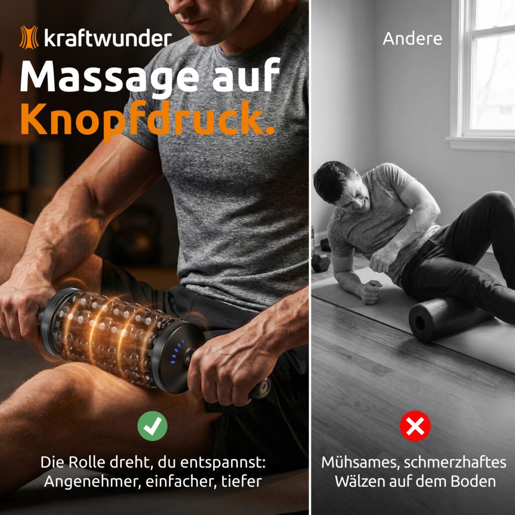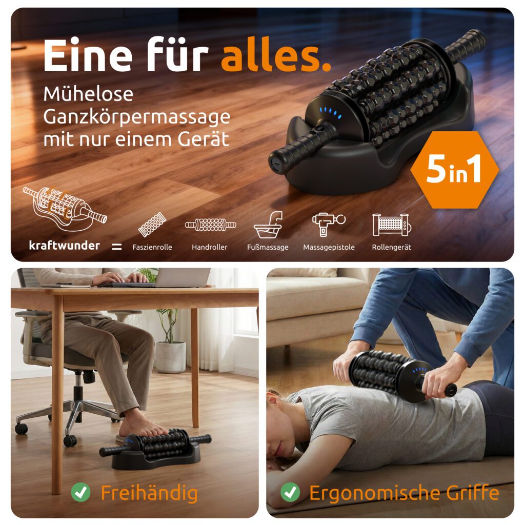 In unserem Test haben wir uns die elektrische Faszienrolle der Marke Kraftwunder genauer angesehen, um diese Aspekte zu bewerten und ihren Nutzen im Alltag zu überprüfen. Dabei blicken wir auf Qualität, Handhabung, Funktionalität und Preis-Leistungs-Verhältnis, um Ihnen eine fundierte Kaufentscheidung zu erleichtern.