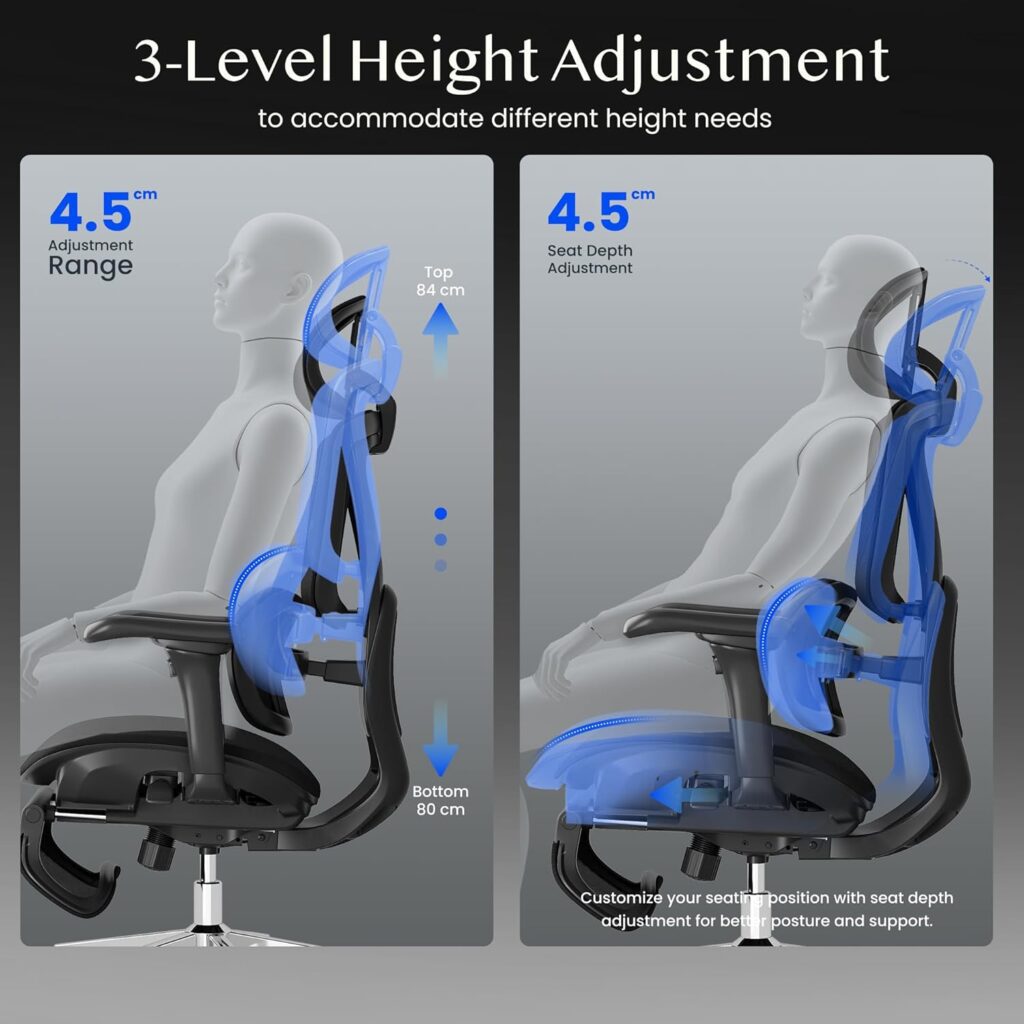 Die dritte und letzte wichtige Eigenschaft dieses ergonomischen Stuhls ist sein Beitrag zum ergonomischen Komfort für eine lange und konzentrierte Arbeitszeit. Der Stuhl reduziert Druckpunkte, beugt Verspannungen vor und fördert eine gesunde Sitzhaltung, was zu spürbar mehr Wohlbefinden und Produktivität im Büro oder im Home Office führt.