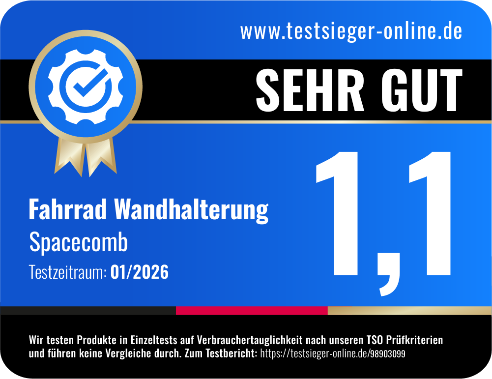 Unser abschließendes Urteil zur Spacecomb Fahrrad Wandhalterung ist durchweg positiv. Das Produkt überzeugt in allen getesteten Kategorien. Angefangen von der Verpackung, die sowohl funktional als auch umweltfreundlich ist, über die hochwertige Verarbeitung und die robuste Beschaffenheit der Wandhalterung selbst, bis hin zum mitgelieferten Zubehör und der klar strukturierten Montageanleitung. Besonders hervorheben möchten wir die drei zentralen Eigenschaften der Halterung: Sie ist schwenkbar, platzsparend und praktisch. Darüber hinaus bietet sie zusätzlichen Stauraum für Helme.
