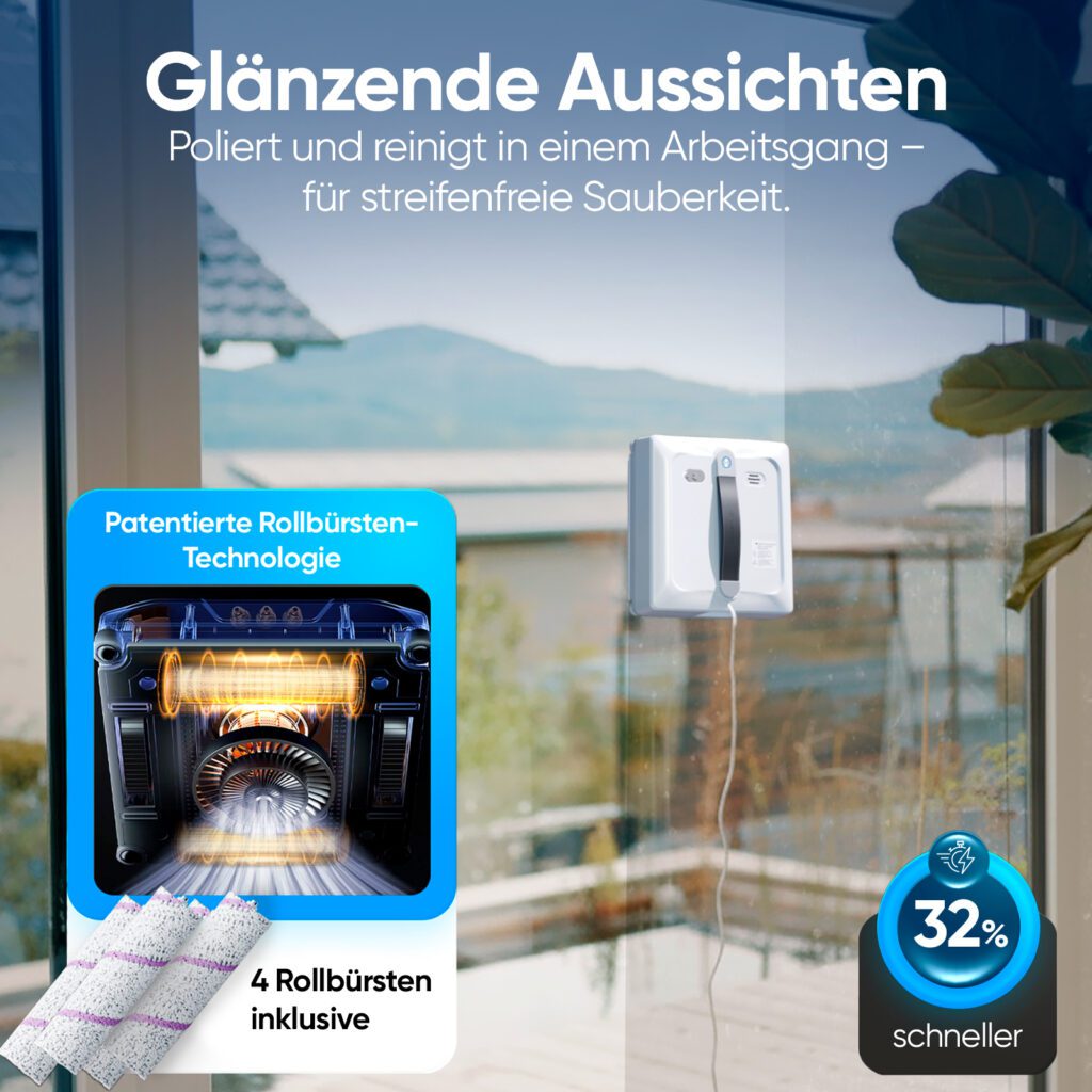 Der Fensterroboter W50D der Marke Lukonix bringt für die Kunden drei signifikant herausragende Eigenschaften mit. Erstens, ist das Gerät mit zwei patentierten doppelten Rollbürsten ausgestattet, die sowohl die Aufgaben des Reinigens als auch des Polierens befriedigend ausführen. Somit sorgt der Roboter für ein streifenfreies Ergebnis und lässt Ihre Fenster in neuem Glanz erstrahlen. Zweitens, ist der W50D der erste Fensterroboter, der auf deutsche Sprachbefehle reagiert und somit eine komfortable Bedienung ermöglicht. Mit dieser Funktion können Sie bequem das Gerät steuern und gleichzeitig die Hände für andere Tätigkeiten frei haben. Drittens, hält der Roboter selbst bei einem „Stromausfall“ bis zu 20 Minuten fest an der Scheibe, dank seiner intelligenten Saugtechnologie. So bietet das Gerät eine unterbrechungsfreie Reinigungsleistung.