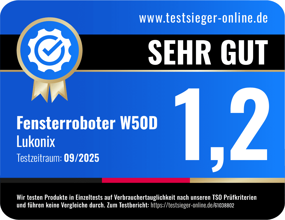 Das aktuell von uns getestete Produkt ist der Fensterroboter W50D der Marke Lukonix, welcher zurzeit zu einem Preis von 249,49€ auf dem Markt angeboten wird. Diese Preiskategorie ordnet den Fensterroboter in ein höheres Preissegment ein, verglichen mit anderen Mustermodellen der gleichen Produktkategorie. Wir sehen allerdings den Mehrwert, der durch die Besonderheiten dieses Geräts geboten wird und welche den höheren Preis rechtfertigen könnten.