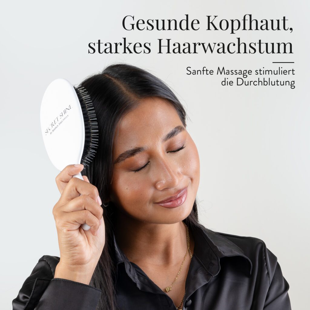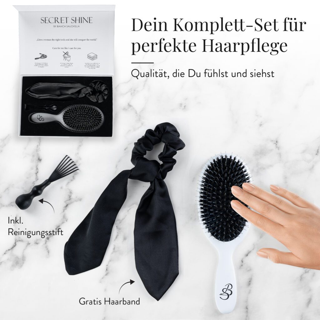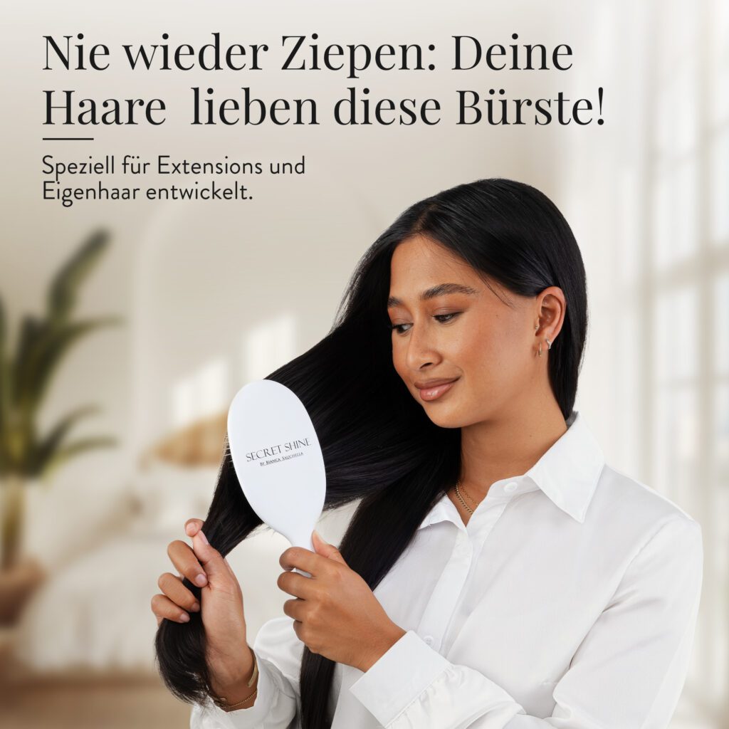 Die Haar- & Extensionsbürste ist ein unerlässliches Tool im täglichen Haarstyling-Routine jeder Frau, die Wert auf ein gepflegtes Erscheinungsbild legt. Sie dient nicht nur zum Entwirren der Haare, sondern auch zur Verteilung von dem natürlichen Haaröl, was zu glänzenderem und gesünderem Haar führt. Bei Personen mit Haarverlängerungen ist eine spezielle Extensionsbürste besonders wichtig, da diese die Extensions schonend entwirrt, ohne sie zu beschädigen oder gar herauszureißen. Beim Kauf sollte man auf Qualitätsmerkmale wie das Material, die Art der Borsten, den Griff und die Robustheit der Bürste achten. Darüber hinaus ist es empfehlenswert, eine Bürste zu wählen, die speziell für den eigenen Haartyp geeignet ist. Je feiner und sensibler das Haar, desto weicher sollten die Borsten beispielsweise sein. Deshalb testen wir heute die Haar- & Extensionsbürste der Marke Bianca Sauchella Secret Shine, um Ihnen bei der Kaufentscheidung zu helfen.