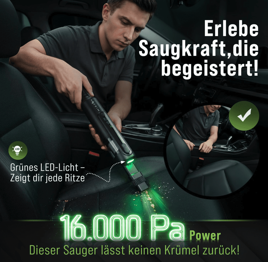 Der Handstaubsauger Green Light von Mireon überzeugt durch mehrere Eigenschaften, die ihn besonders empfehlenswert machen. Ein zentrales Merkmal ist das grüne LED-Licht, das selbst kleinste Krümel und Staubpartikel sichtbar macht und die Reinigung deutlich erleichtert. Gleichzeitig ermöglicht die lange Akkulaufzeit ein effizientes Arbeiten, ohne dass häufiges Nachladen erforderlich ist.