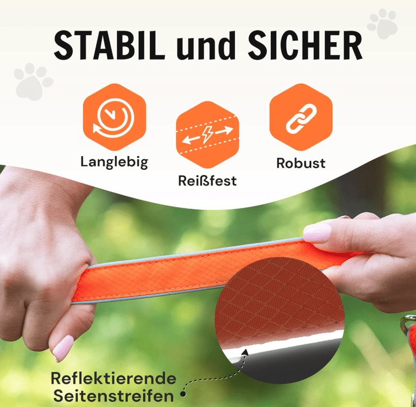 Zuletzt überzeugt die Leine durch ihre Robustheit. Obwohl sie aus sehr leichtem Material besteht, zeigte sie sich in unseren Tests äußerst widerstandsfähig und zuverlässig. Damit eignet sie sich hervorragend für Hunde jeder Größe und Stärke.