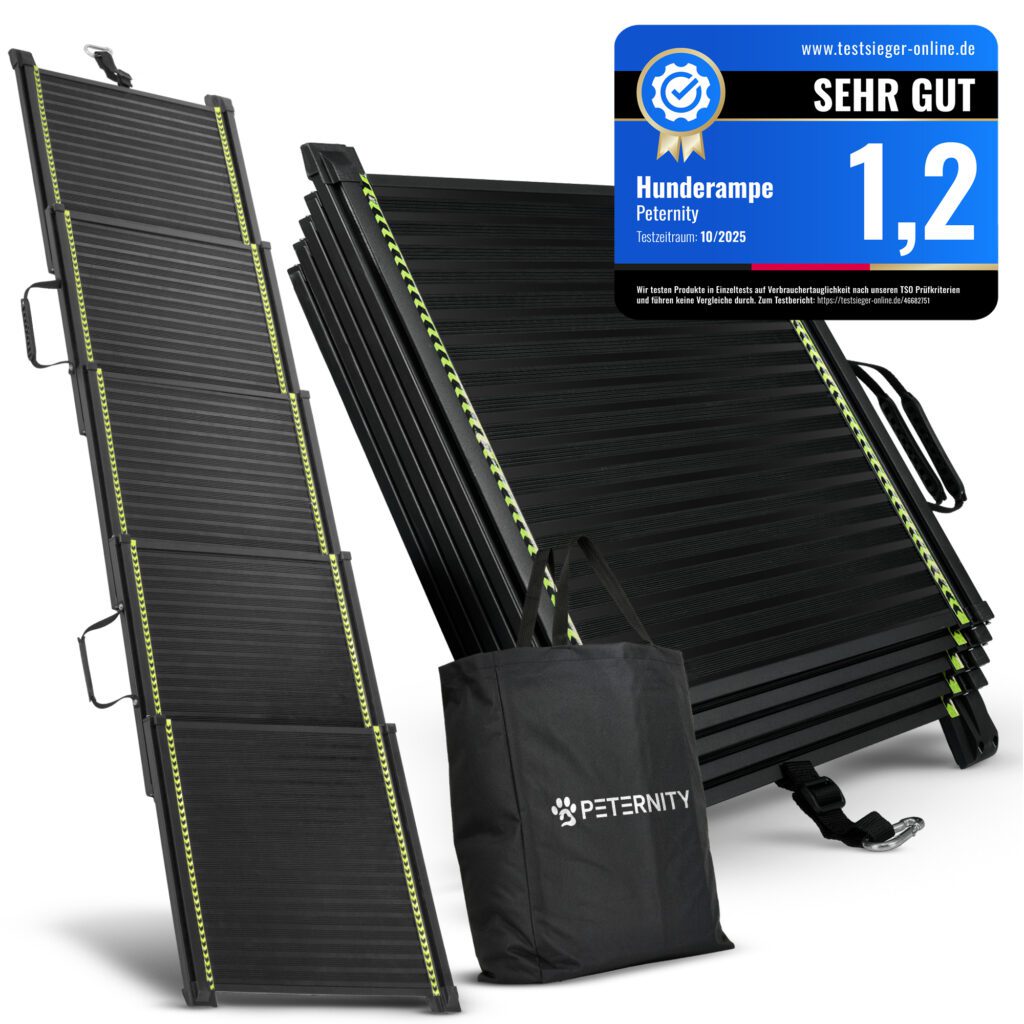 Hunderampen, wie das Modell von Peternity, das wir in diesem Test untersuchen, sind nützliche Hilfsmittel für Hunde, um Höhenunterschiede einfacher und sicherer zu überwinden. Diese sind insbesondere für ältere, jüngere oder erkrankte Hunde hilfreich, um den Zugang zu höheren Oberflächen, wie etwa dem Auto, dem Bett oder der Couch, zu erleichtern. Das schont die Gelenke und verringert das Verletzungsrisiko.