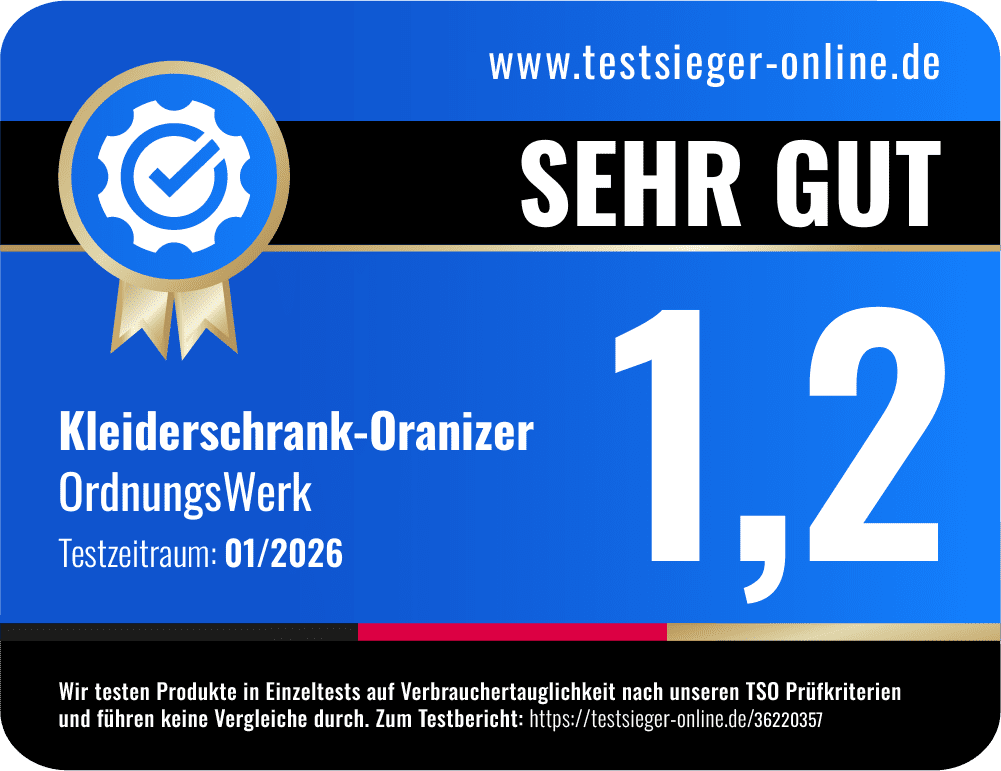 Unsere Testergebnisse des Kleiderschrank- Oranizers der Marke OrdnungsWerk haben drei herausragende Eigenschaften hervorgehoben, welche für die Kunden von besonderem Interesse sind: