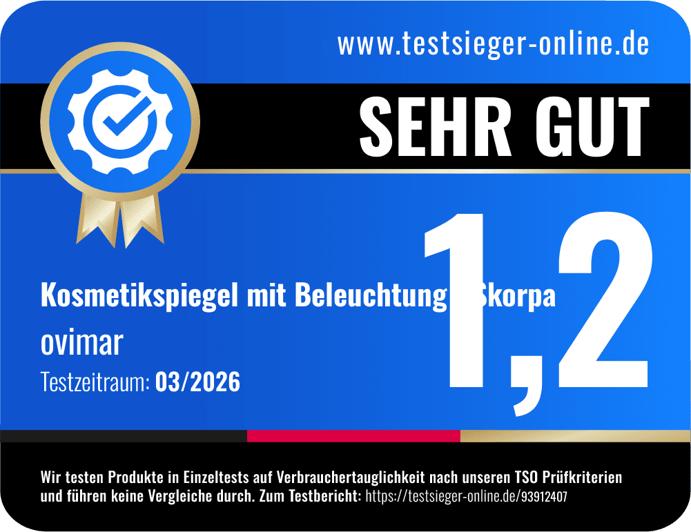 Im Großen und Ganzen hat uns der ovimar Skorpa Kosmetikspiegel mit Beleuchtung überzeugt. Er besticht durch seine außergewöhnlich gute Verarbeitung, die ihn stabil und langlebig macht.