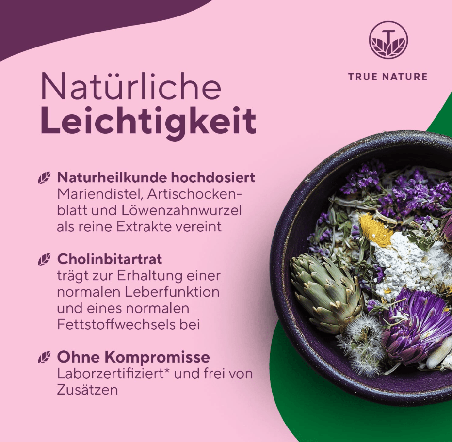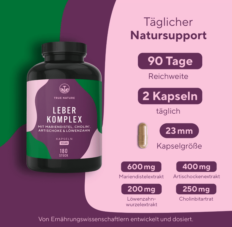 Unser Körper ist ein komplexe System und unser Stoffwechsel spielt dabei eine zentrale Rolle. Insbesondere die Leber als unser größtes Entgiftungsorgan ist unabdingbar für die Gesundheit und das Wohlbefinden. Mit zunehmendem Alter, unausgewogener Ernährung oder einem stressigen Lebensstil kann jedoch die Belastung für die Leber steigen. In solchen Fällen kann es ratsam sein, zur Unterstützung ein Nahrungsergänzungsmittel wie den Leber Komplex von TRUE NATURE einzunehmen. Dieses Produkt ist speziell darauf ausgelegt, die gesunde Funktion der Leber zu unterstützen und kann zur allgemeinen Gesundheitsvorsorge eingesetzt werden.