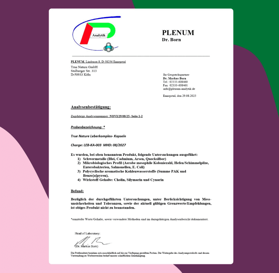 Drittens wird das Produkt in Deutschland produziert und ist umfangreich laborgeprüft. Unabhängige Laboranalysen bestätigen die Reinheit und hohe Qualität des Produkts. Zudem gewährleistet die Produktion in Deutschland kontrollierte Herstellungsprozesse, hohe Standards und eine hohe Transparenz. Dies setzt die Marke TRUE NATURE von vielen anderen Anbietern ab, deren Produkte häufig außerhalb der EU hergestellt werden.