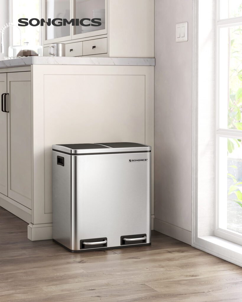 Der von uns getestete Mülleimer der Marke SONGMICS überzeugt durch drei signifikante Eigenschaften, welche für die Kunden besonders wichtig sind: Er ist aus Metall gefertigt, was ihn perfekt für die heimische Küche macht, denn es bietet Robustheit und Stil zugleich.
