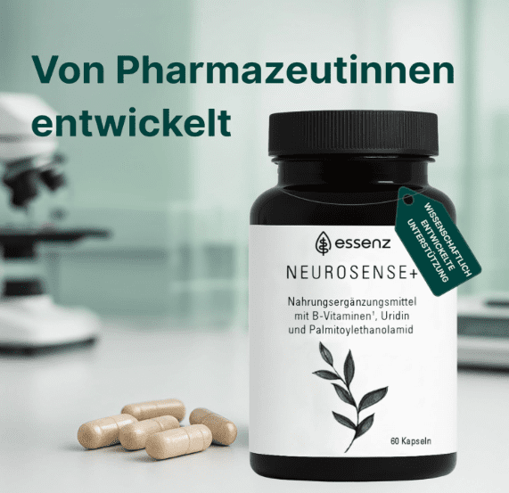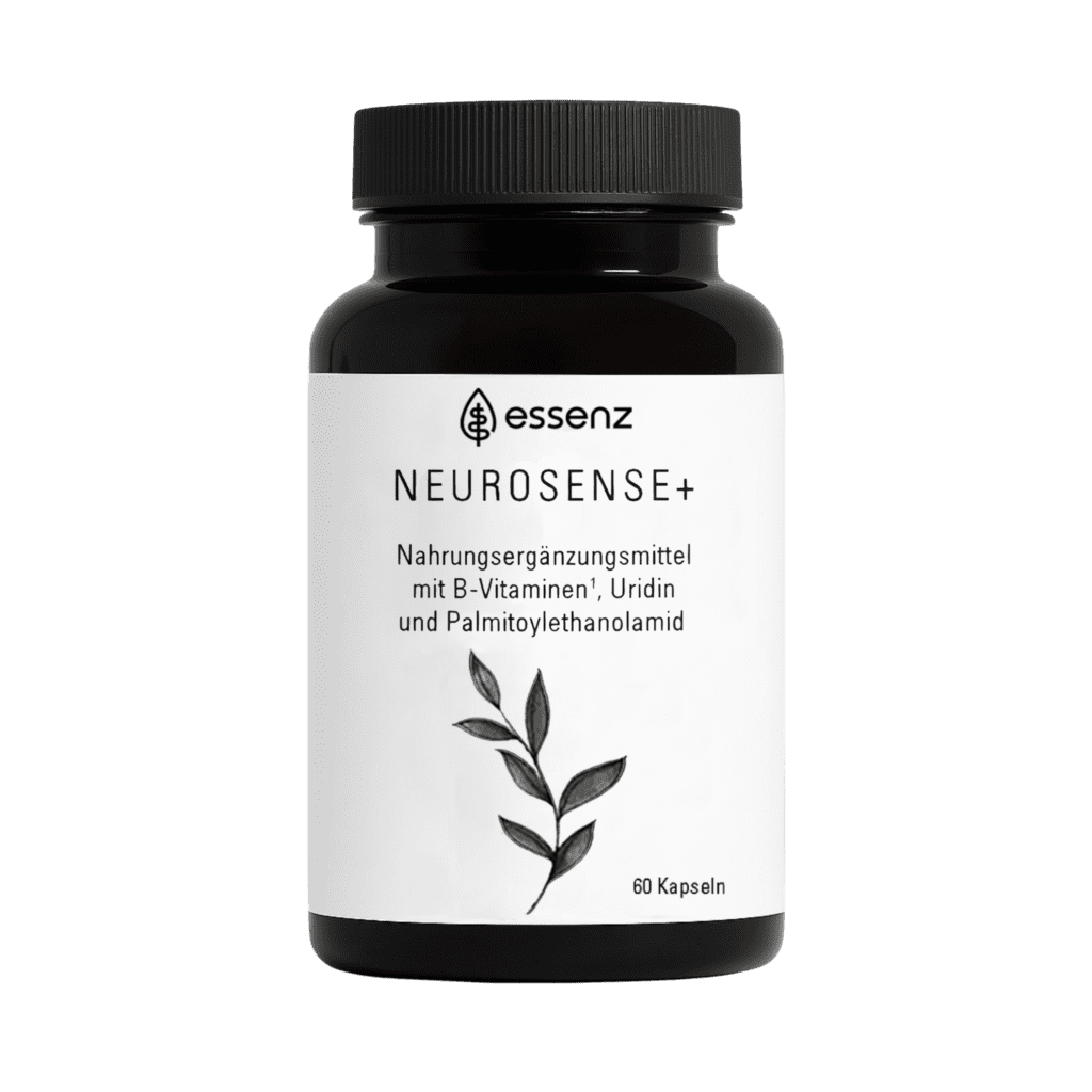 Die ESSENZ Neurosense+ Kapseln sind reich an ausgewählten Inhaltsstoffen wie UMP, CMP, Palmitoylethanolamid (PEA) und aktivierten B-Vitaminen. Diese Zusammensetzung wurde sorgfältig konzipiert, um das allgemeine Wohlbefinden zu fördern und eine normale Funktion des Nervensystems zu gewährleisten. Ein weiterer Vorteil der regelmäßigen Einnahme dieser Kapseln ist die Unterstützung der zellulären Prozesse im Körper. Darüber hinaus führen diese Kapseln dazu, dass das körperliche und geistige Gleichgewicht im Alltag unterstützt wird. Die Formel ist so abgestimmt, dass sie den Anforderungen eines stressigen Alltags wirksam entgegentritt.