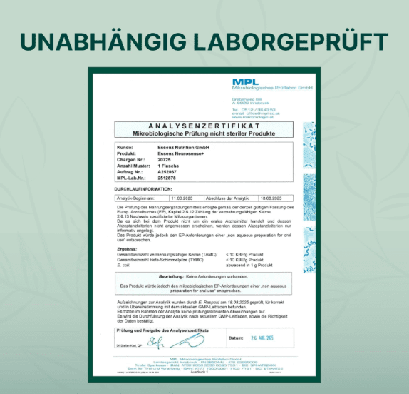 Unsere Testergebnisse für die Neurosense Kapseln der Marke Essenz sind eingetroffen und das erste, was uns bemerkenswert ins Auge sticht, ist die Verpackung. Sie wurde sorgfältig gestaltet, um das Produkt optimal zu schützen. Dies ist ein wesentlicher Aspekt, der allzu oft leicht übersehen wird. Ein Produkt kann von hoher Qualität sein, aber wenn es während des Transports oder der Lagerung beschädigt wird, wird die Qualität beeinträchtigt. Bei den Essenz Neurosense Kapseln wurde dies umfassend berücksichtigt.