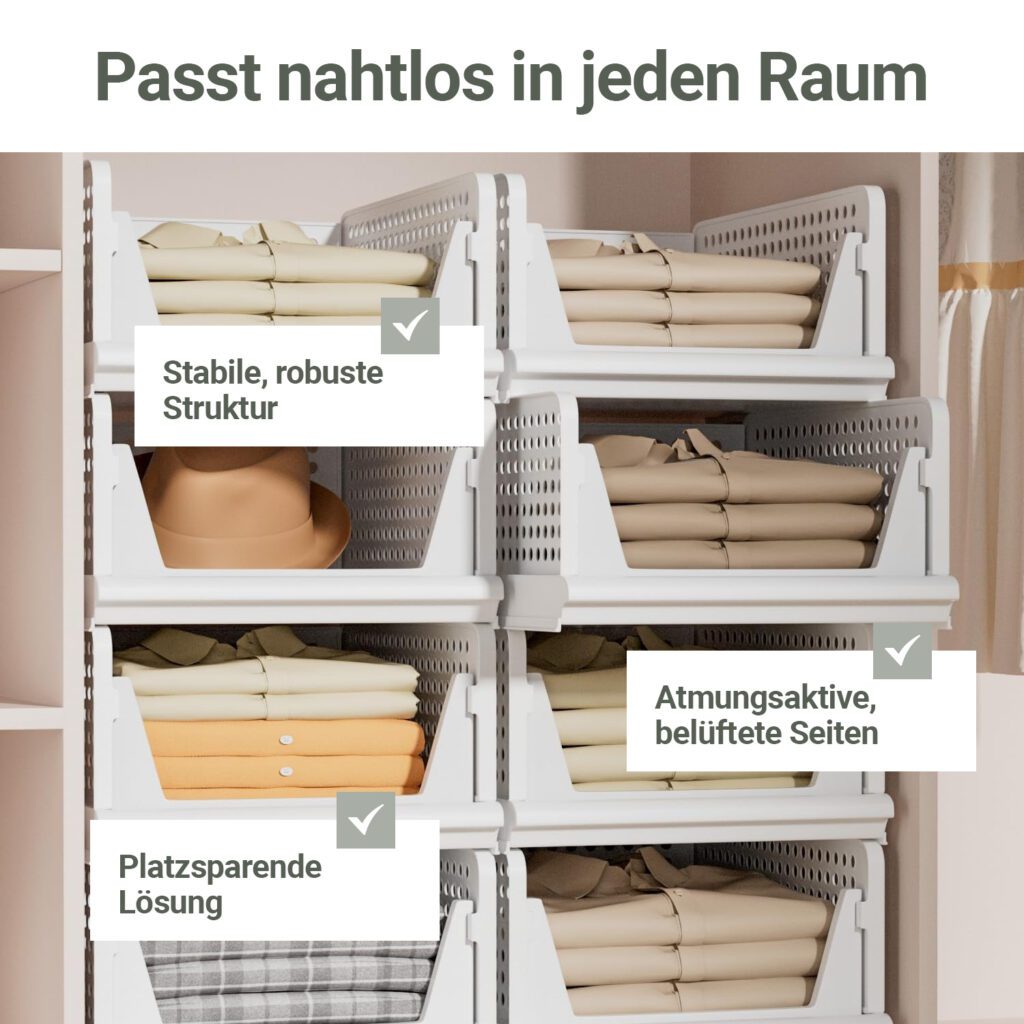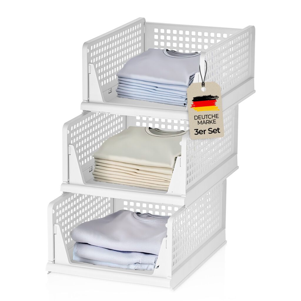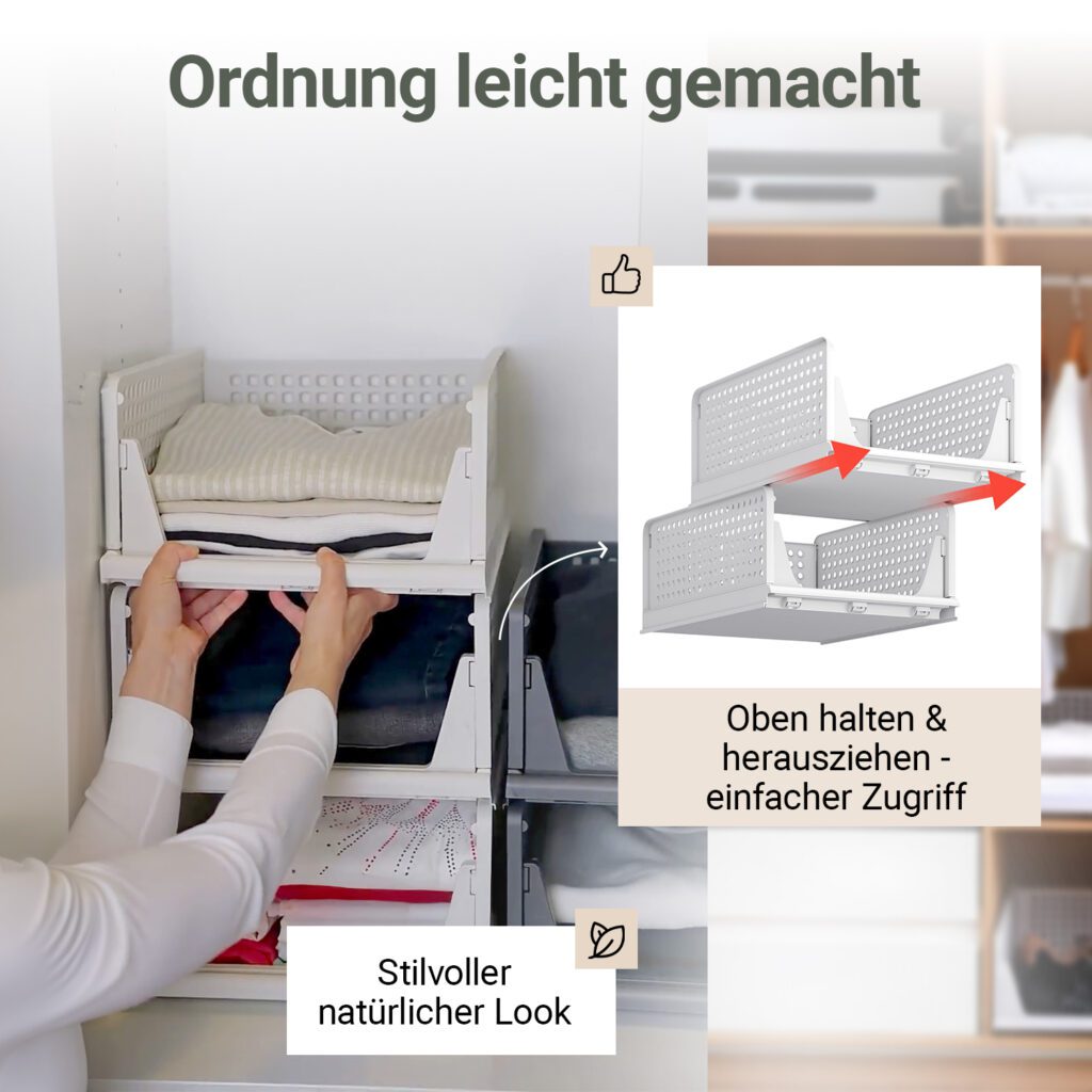 Unser aktuell getestetes Produkt ist der stapelbare Kleiderschrank-Organizer der Marke Ally Maison, der aus robustem Kunststoff besteht. Dank seines cleveren Designs lässt sich der Organizer schnell und einfach aufbauen. Sein großer Vorteil liegt in seiner Fähigkeit, platzsparend aufeinander gestapelt zu werden. Diese Funktion schafft eine flexible und individuell anpassbare Regalstruktur, die in verschiedenen Anwendungsbereichen einsetzbar ist. Ob im Kleiderschrank zur übersichtlichen Sortierung von Kleidungsstücken, im Badezimmer zur Aufbewahrung von Kosmetikartikeln, in der Küche für das Lagern von Vorräten oder im Wohnzimmer zur Organisation von Büchern und Spielzeug – der Ally Maison Organizer ist ein vielseitiges und praktisches Hilfsmittel, um Ordnung zu schaffen und zu halten. Ein weiteres Highlight dieses Produktes ist sein offenes und ausziehbares Design, das einen leichten und schnellen Zugriff auf die verstauten Gegenstände ermöglicht.