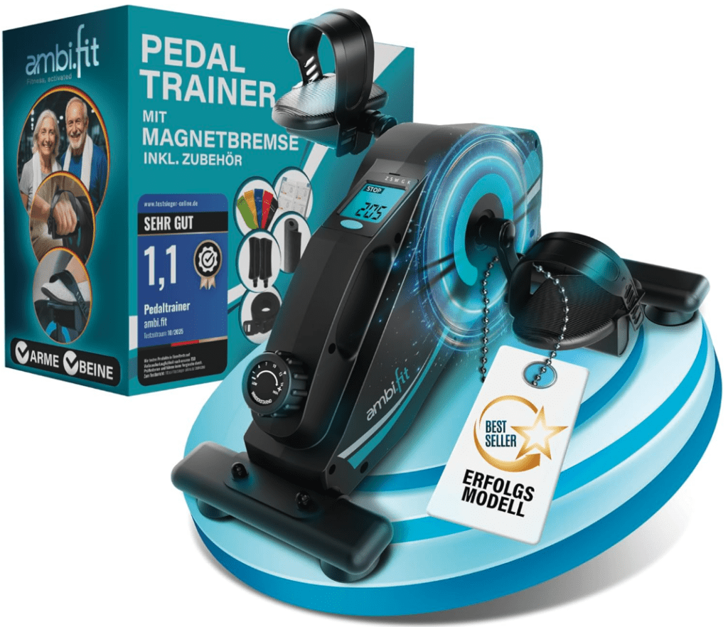Ein Pedaltrainer, wie das Modell ambi.fit, ist ein kompaktes Trainingsgerät, das vor allem für die Stärkung der Arm- und Beinmuskulatur geeignet ist. Es eignet sich insbesondere für Menschen, die längere Zeit sitzen oder stehen müssen, oder für Personen, denen ein regelmäßiger Gang ins Fitnessstudio schwerfällt. Ein Pedaltrainer kann nahezu überall genutzt werden – sei es im Büro, zu Hause oder sogar auf Reisen.