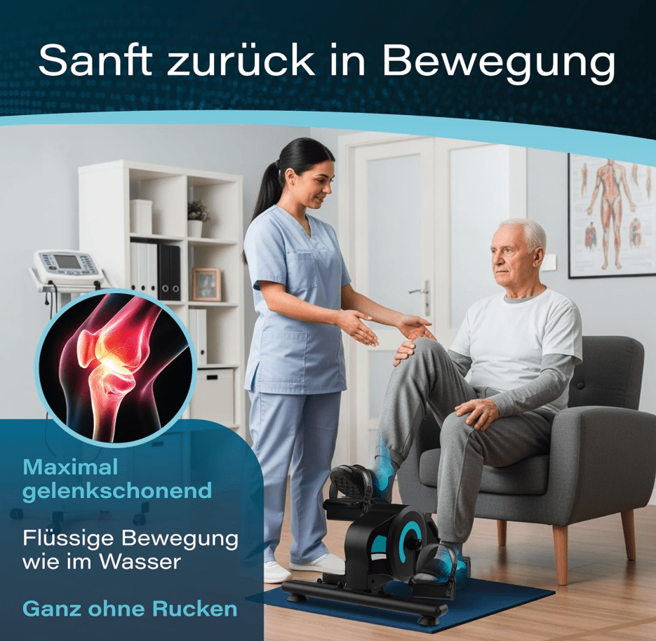 Der Pedaltrainer bringt Bewegung in deinen Alltag – egal ob beim Arbeiten, Fernsehen oder einfach zwischendurch.Leise, kompakt und einfach zu bedienen – du trainierst deine Beine, schonst die Gelenke und tust aktiv was für deine Gesundheit.Ideal für alle, die fit bleiben oder es wieder werden wollen – vom Homeoffice bis zur Reha.