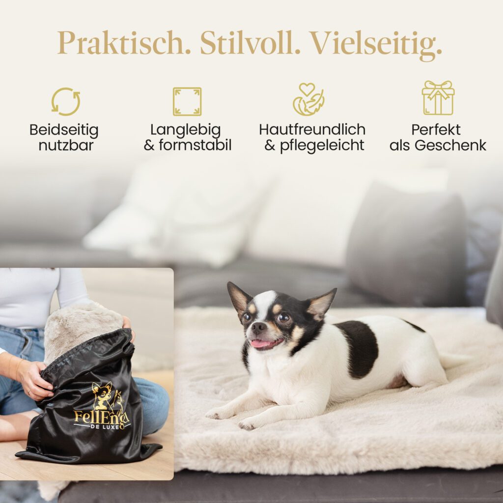 Die Premium Haustierdecke der Marke FellEngel de luxe besticht besonders durch ihre drei herausragenden Eigenschaften.