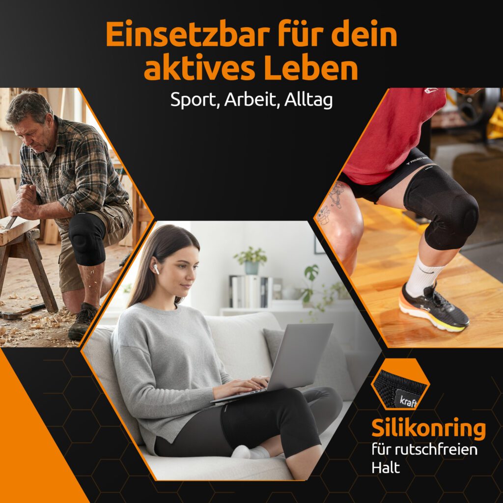 Die Bandage erweist sich als besonders hilfreich bei sportlicher Belastung, aber auch im Alltagsgebrauch und bei Tätigkeiten, die das Knie stark beanspruchen – etwa langes Stehen, Treppensteigen, Arbeit oder Training. Konzipiert ist sie mit dem Ziel, das Knie nachhaltig zu entlasten und ein sichereres Bewegungsgefühl zu vermitteln.