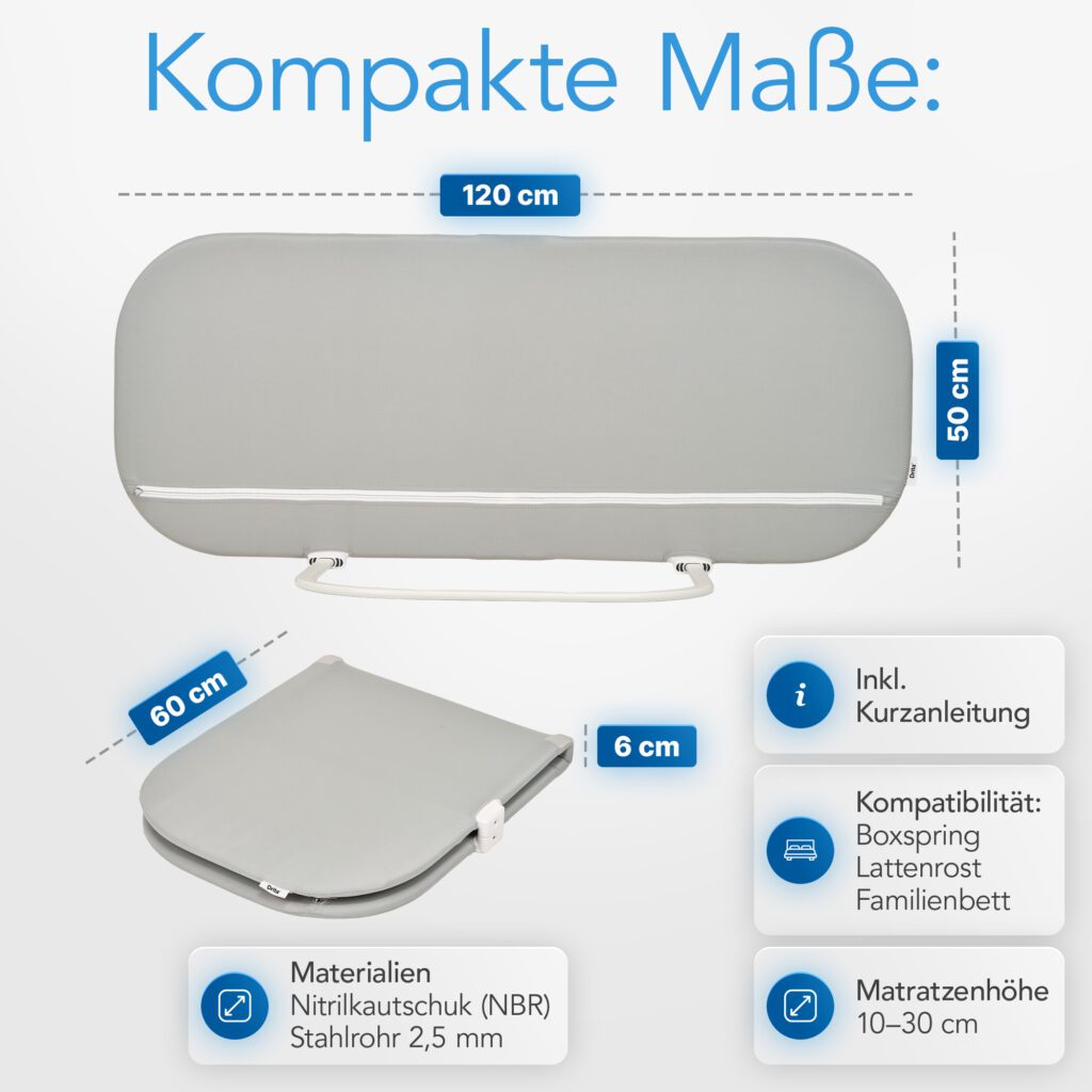 Das faltbare Design ermöglicht ein schnelles Auf- und Zusammenklappen des Rausfallschutzes. Dies macht es ideal für Reisen oder wenn Sie den Rausfallschutz platzsparend verstauen möchten. Besonders herausragend an dem Rausfallschutz von DRITA® ist die intelligente Rahmenkonstruktion in einer Dreiecksstruktur. Diese garantiert einen sicheren Halt ohne Verrutschen. Letztere Eigenschaft sichert die Robustheit und Langlebigkeit dieses Produkts, da es aus einem robusten Stahlrahmen gefertigt ist, der durch eine Ummantelung von NBR gegen Stöße geschützt ist. Der weiche, abnehmbare Peach-Skin-Bezug verleiht dem Rausfallschutz nicht nur eine angenehme Haptik, sondern macht ihn auch sicher in der Anwendung.