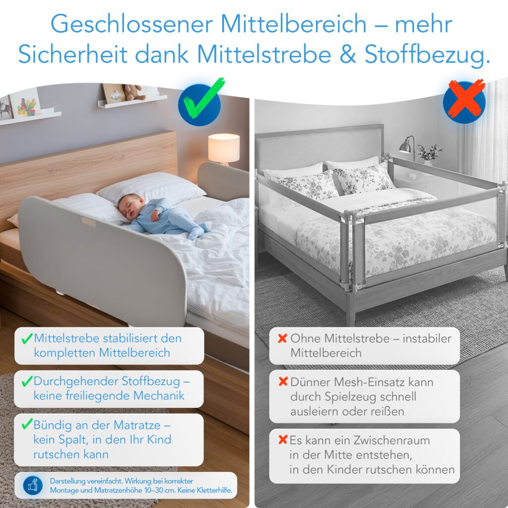 Ein Rausfallschutz ist ein unentbehrliches Produkt in jedem Haushalt mit kleinen Kindern. Mit seiner Hilfe kann das Risiko eines nächtlichen Sturzes aus dem Bett signifikant reduziert werden, indem eine physische Barriere zwischen dem Kind und dem Bettrand geschaffen wird. Vor allen Dingen bietet dieses Produkt Eltern die Sicherheit und die Gewissheit, dass ihre Kinder sicher und geschützt schlafen.