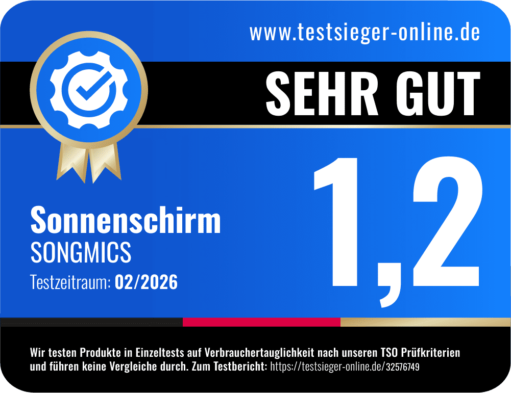 Wir haben den Sonnenschirm der Marke SONGMICS ausführlich getestet und unsere Ergebnisse nachfolgend in einem Testbericht zusammengefasst.