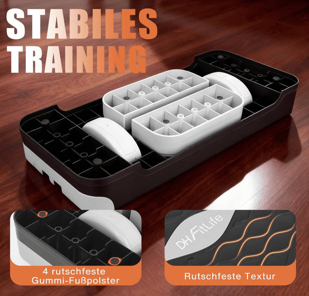 Ein Steppbrett ist ein vielseitiges Fitnessgerät, das zur Steigerung der körperlichen Ausdauer und allgemeinen Fitness genutzt wird. Steppbretter sind besonders nützlich zur Stärkung verschiedener Muskelgruppen, insbesondere in Beinen und Gesäß, und können zudem zur besseren Balance und Koordination beitragen. Beim Kauf eines solchen Gerätes sollte man auf verschiedene Aspekte achten, wie die Stabilität des Steppbrettes, rutschfeste Oberfläche und Stand, Anpassungsfähigkeit an unterschiedliche Fitnesslevels durch verstellbare Höhe sowie die einfache Lagerung und Transportierbarkeit. Unser heute zu testendes Produkt ist das Steppbrett TBD01-A der Marke DH FitLife – ein Produkt, das verspricht, diese wichtigen Kriterien zu erfüllen.