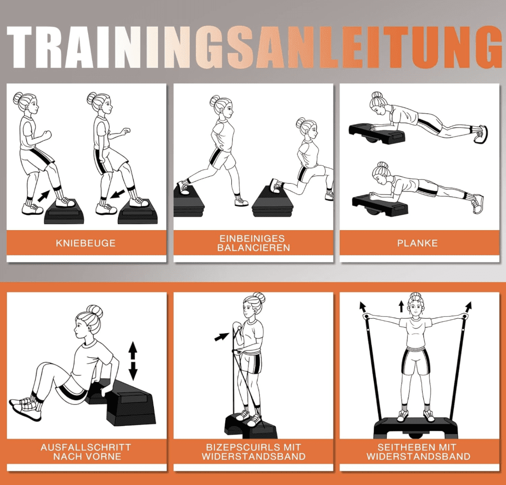 Des Weiteren enthält das Steppbrett Widerstandsbänder, die ein effektives Ganzkörpertraining ermöglichen. Dies erlaubt eine effektive Kombination aus Kraft- und Cardiotraining, was für ein abwechslungsreiches und effektives Workout sorgt.