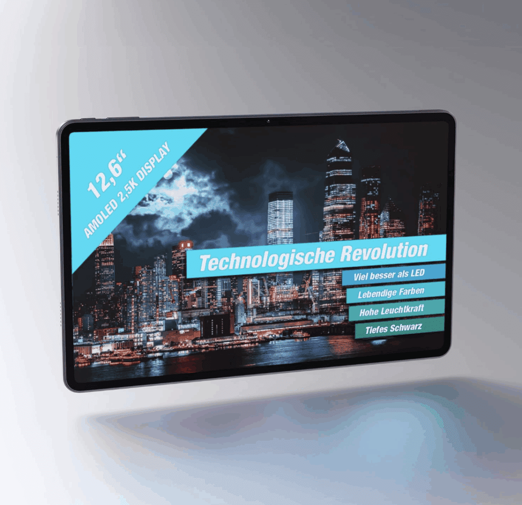 Zuallererst bietet dieses Tablet ein Premium-Display der nächsten Generation. Mit einem beeindruckenden 12,6″ AMOLED 2,5K Display mit frameless Design, setzt dieses Gerät neue Maßstäbe in Sachen Bildqualität. Die Farbbrillanz, echten Schwarztöne und die Leuchtkraft, sind herkömmlichen LED-Displays deutlich überlegen. Ein optisches Highlight, das Filmgenuss, Gaming und Arbeit auf einem ganz neuen Level ermöglicht.