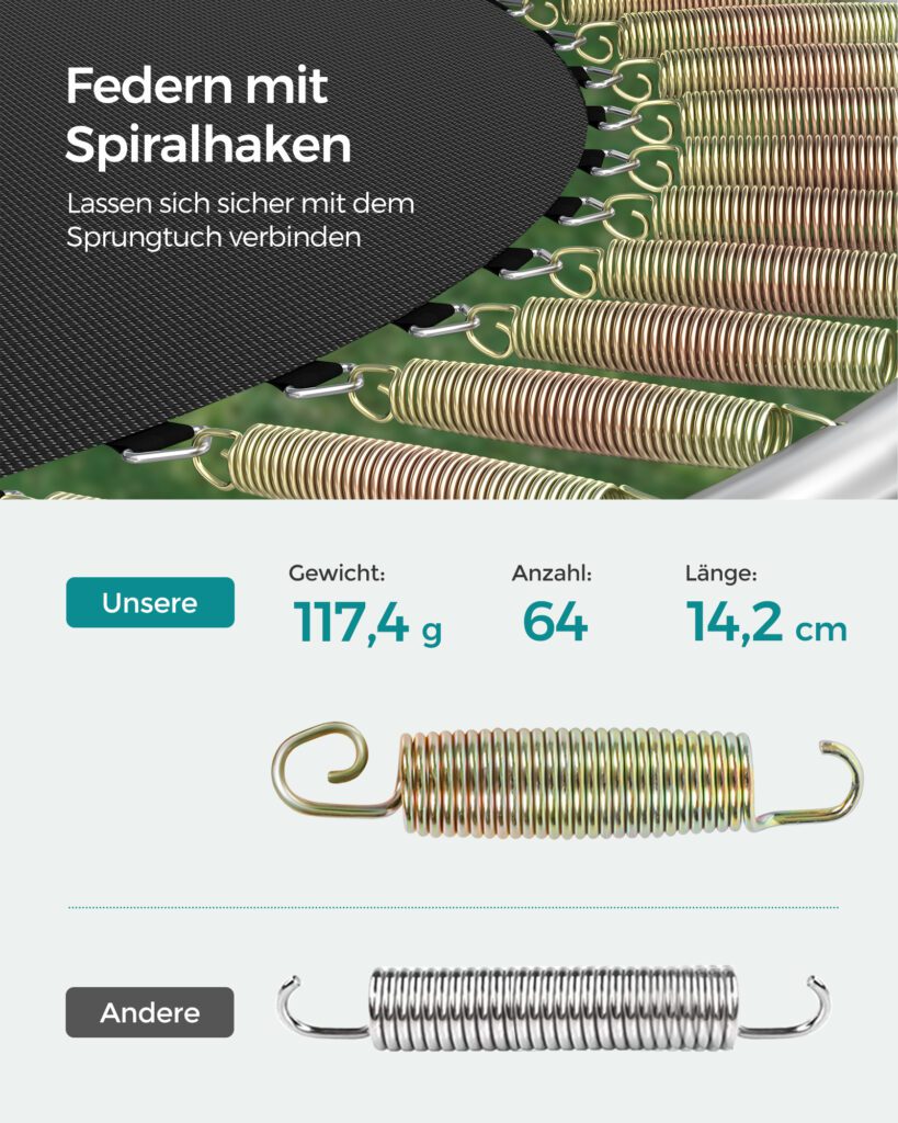 Das aktuell untersuchte Produkt, ein Trampolin der Marke SOMGMICS, befindet sich in einem höheren Preissegment, verglichen mit ähnlichen Modellen auf dem Markt. Es wird derzeit zu einem Preis von 209,99€ verkauft und spricht daher potenzielle Käufer an, die bereit sind, für Qualität und Sicherheit mehr zu zahlen. Diese Preisgestaltung ist ein Indikator für das hohe Niveau an Leistung und Zuverlässigkeit, das dieses Trampolin bietet.